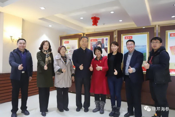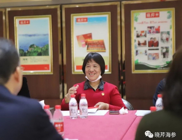 3月18日,民建大連市委會陳國貴主委(左4)帶領(lǐng)調(diào)研組一行4人,走進大連曉芹食品有限公司,就企業(yè)目前發(fā)展概況和未來戰(zhàn)略發(fā)展等問題,進行調(diào)研并召開座談會,曉芹海參創(chuàng)始人王曉芹董事長、趙晶總經(jīng)理及兩位高管參會。